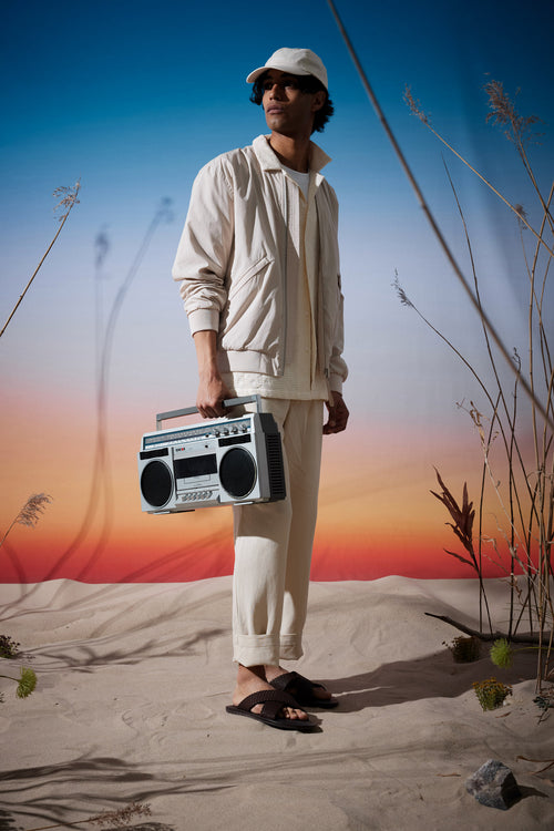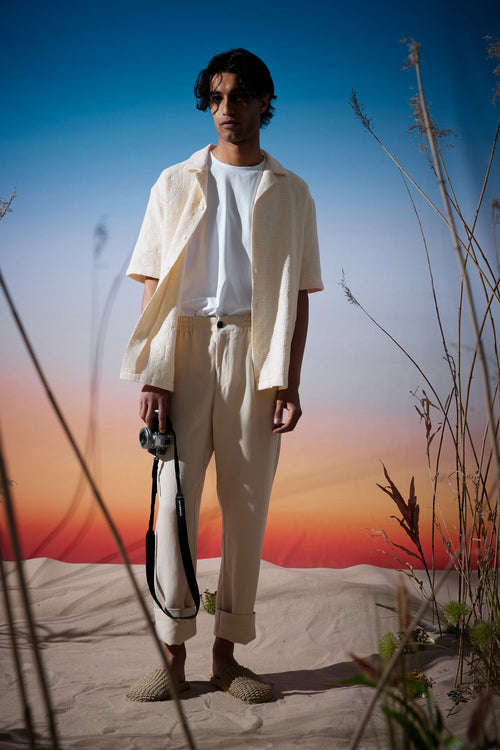We’re island-hopping in Hiiumaa, the namesake of this collection and the birthplace of Elvine Mänd. Natural fibers and sustainable fabrics rule the landscape alongside summery shades and Hiiumaa-inspired prints. Fill your suitcase with timeless, sophisticated garments that take you from seaside to cityscapes — and don’t forget the accessories. This season we’re bringing luggage tags, caps, beach towels, and swim shorts on all of our adventures.