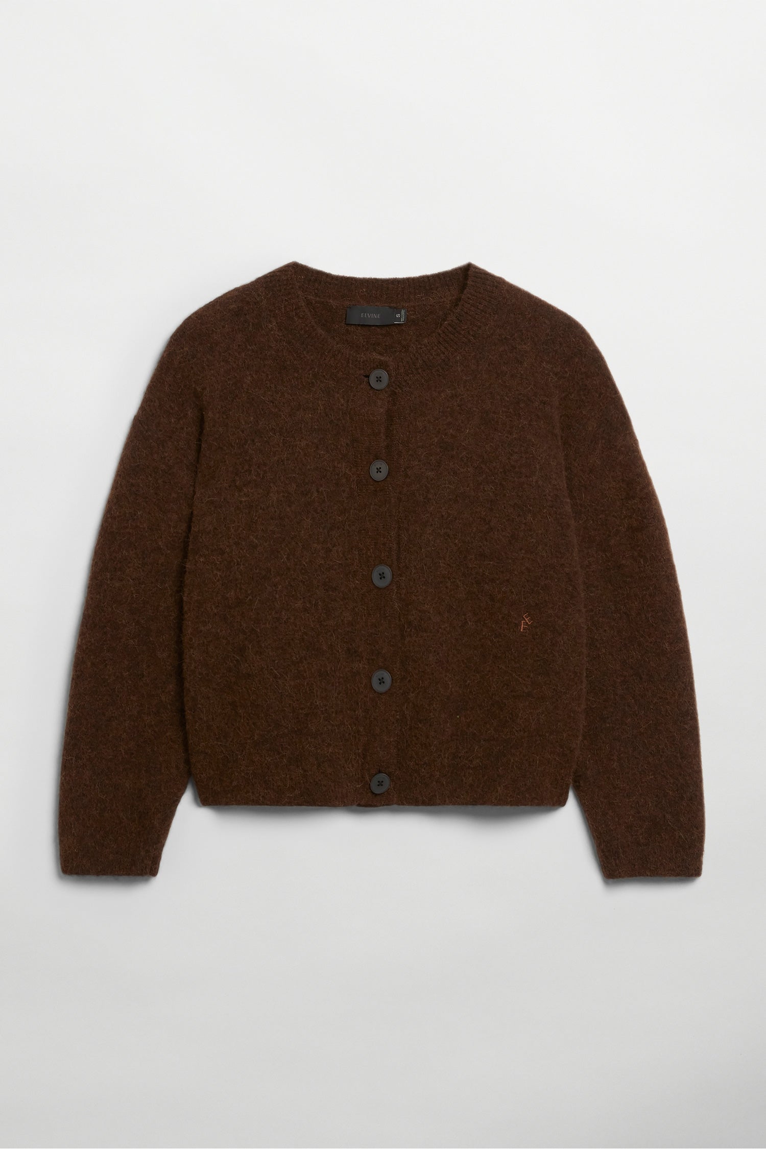 Erna is a short-bodied knitted cardigan made from an Alpaca Merino Blend fabric. The alpaca material is soft and silky, complemented by merino wool’s strength and resilience. Erna is soft, fuzzy, and has buttons — what more could you ask for in a cosy layering piece? Wear Erna to coffee dates, or just to look cute around the house. The model is 174 cm tall and wearing a size S. Length of the garment: 52,5 cm (size S). Ref. 331300234