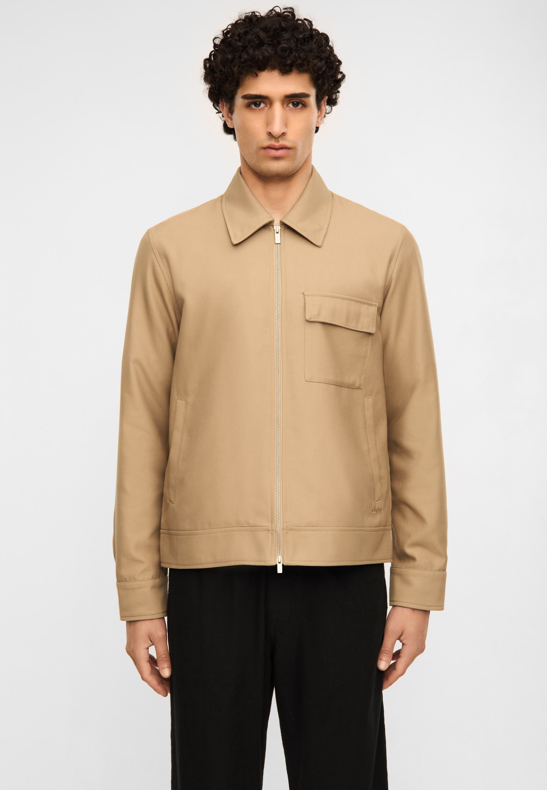Nomio ist eine Hybridform aus Overshirt und Jacke, gefertigt aus DobbyLoom – einem gewebten Stoff mit feiner Textur und klarer, moderner Anmutung. Eine leichte Lage für einen gepflegten und zugleich entspannten Look.