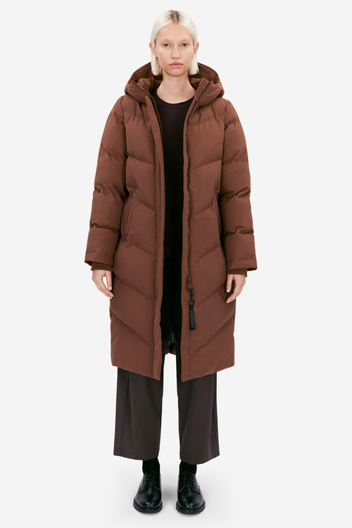 Being one of ELVINE’s warmest parkas, Nalani is made fit for extreme Scandinavian winter climate. This long winter puffer is richly filled with Ecodown fibers, a sustainable, exceptionally warm down imitation. Nalani is the one to go for when harsh winter hits the streets. If between sizes, choose one size down. The model is 176 cm tall and wearing a size S. Length of the winter jacket: 109 cm (size S). Ref. 330433416