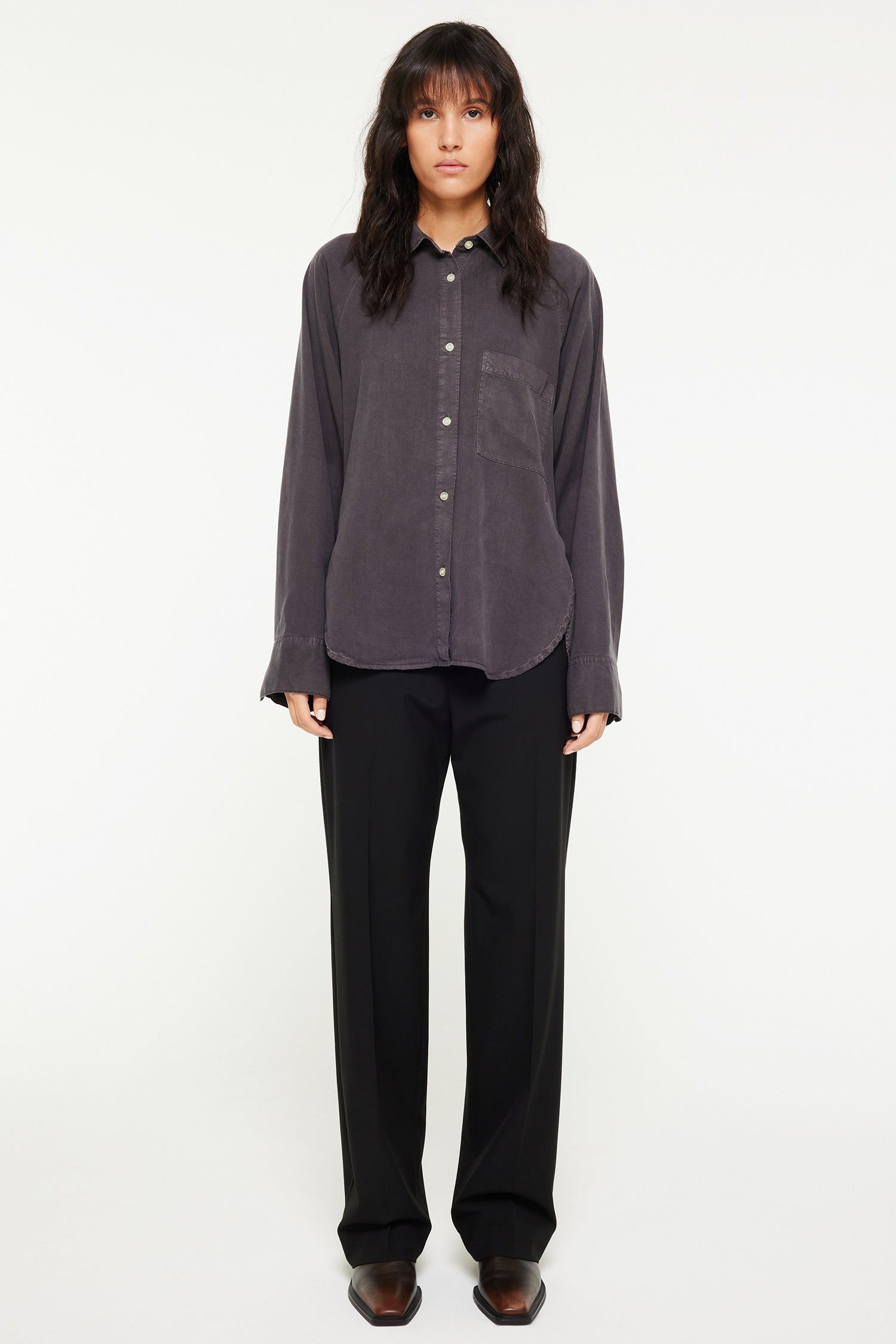 •	Avslappnad passform med normalhög midja